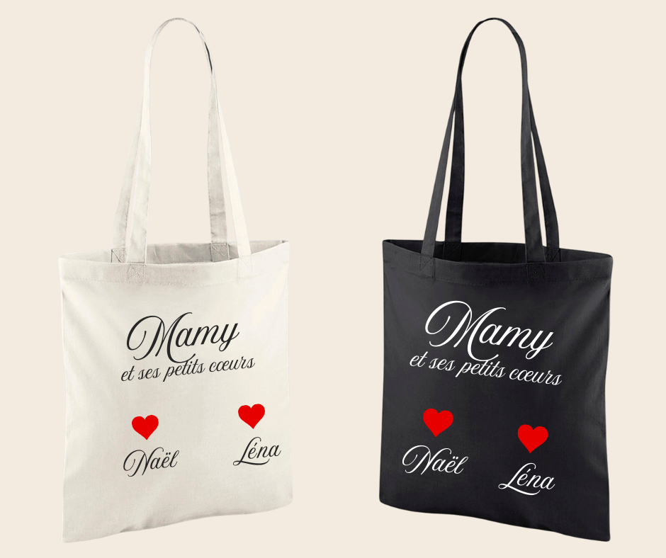 Offrez (ou offrez-vous 😉) un tote bag personnalisĂ©, rempli d’amour et de petits cƓurs pour reprĂ©senter ceux qui comptent le plus.
